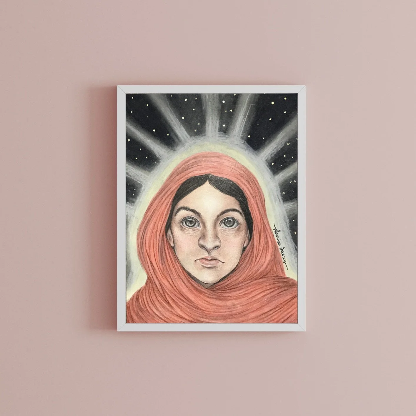 "Francine channeled my spiritual mentor. I remember that when I requested the channeling of my drawing, she was creating many others at the time, and I followed her posts on social media, anxiously waiting for mine. Each one she posted, I just couldn’t see as my mentor. She always blocks us while she’s painting so we can’t see the artwork until it’s finished and arrives at our home — but this time she forgot to block me, and when I saw it, I was certain that it was my mentor. And when I received it, indeed, it was him. So this is the proof that the connection really already exists."